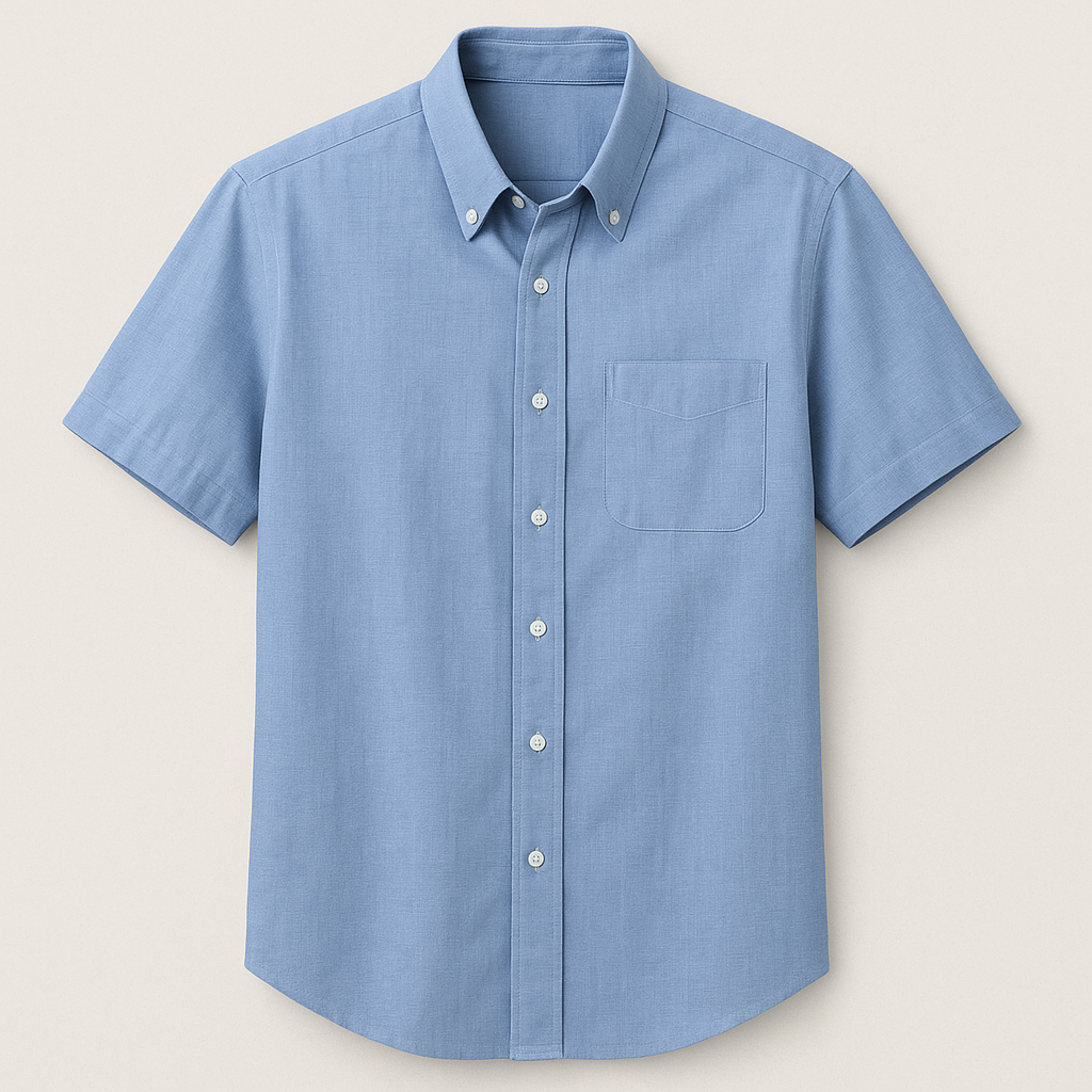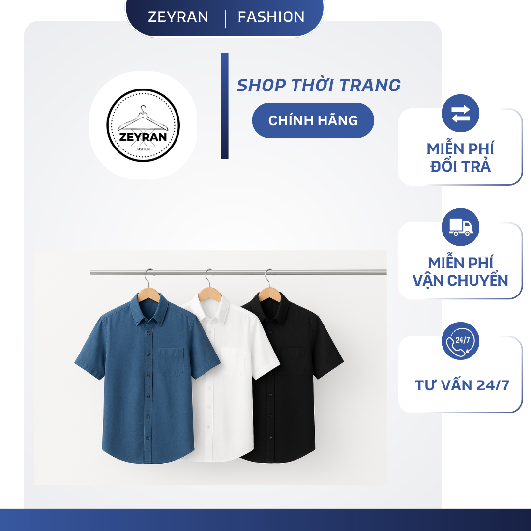 Thiết kế: Tay ngắn, cổ bẻ lịch lãm, cúc cài tinh tế.