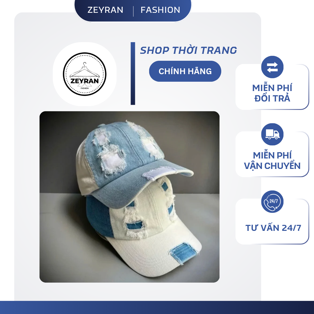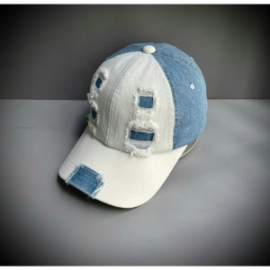 Mũ lưỡi trai Jean rách hai màu xanh trắng